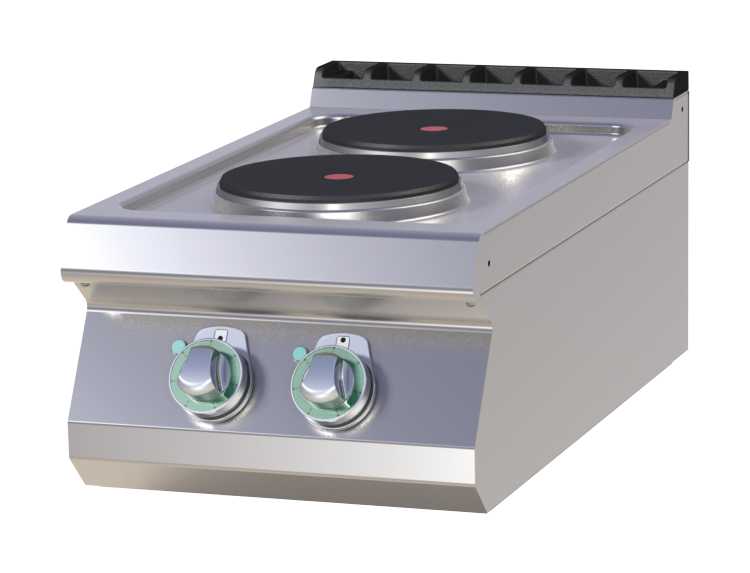 Thermik Serie 700 | Elektroherd Aufstellart: Tischgerät Art der Kochstelle: Gusseisenplatten Durchmesser der Kochstellen: 220 mm Material Gehäuse: AISI 304 Material Arbeitsfläche: AISI 304 Temperaturbereich: +50°C / +400°C Steuerung: 6 Stufenschalter Modell: SP-704E Anzahl der Kochstellen: 2 Verteilung der Kochstellen: 2 x 2,6 kW Elektroanschluss: 400 V, 50-60 Hz, 5,2 kW Maße: 400 x 730 x 300 mm Gewicht: 23,6 kg / 28,5 kg