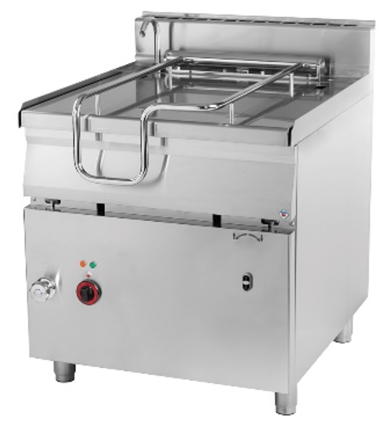 Thermik Serie 900 | Elektro-Kippbratpfanne Maße: 800 x 900 x 900 mm Aufstellart: Standgerät Material Gehäuse: AISI 304 Material Arbeitsfläche: AISI 304 (1,5 mm) Material Tiegel: AISI 304 (12 mm) Tiegel Volumen: 80 Liter Kaltwasserzulauf: ja Heizung: Unter der gesamten Bodenplatte Temperaturbereich: +50°C / +300°C Modell: BRM-90/80E/N Kippvorrichtung: Elektrisch Material Tiegelboden: Edelstahl Elektroanschluss: 400 V, 50-60 Hz, 15,12 kW Gewicht: 132,6 kg / 147,5 kg