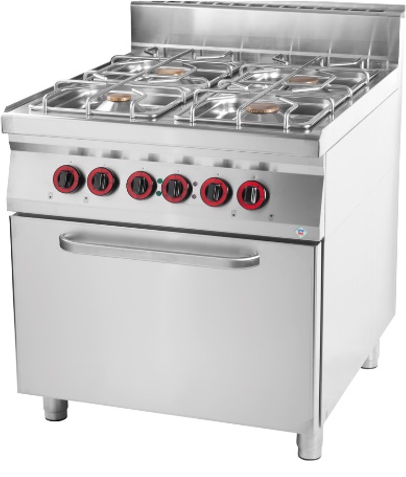 Thermik Serie 900 | Gasherd mit Backofen Maße: 800 x 900 x 900 mm Aufstellart: Standgerät Herdart: Gasherd Anzahl der Kochstellen: 4 Art der Kochstellen: Gas Art der Zündung: Pilotflamme Sicherheitsthermoelement: ja Material der Brenner: Messing Brennermulde: Tiefgezogen, herausnehmbar Brennerroste: AISI 304 Material Gehäuse: AISI 304 Material Arbeitsfläche: AISI 304 Backofen Maße: 682 x 558 x 348 mm Temperaturbereich Backofen: +50°C / +300°C Modell: SPT-90/8021G Verteilung der Kochstellen: 1 x 3,5 kW + 1 x 5,0 kW + 2 x 8,0 kW Backofen: Gasbackofen (GN2/1) Anschlusswert Backofen: 6,0 kW Backofen Funktionen: Statisch Gasanschluss: 30,5 kW Gewicht: 115 kg / 130 kg