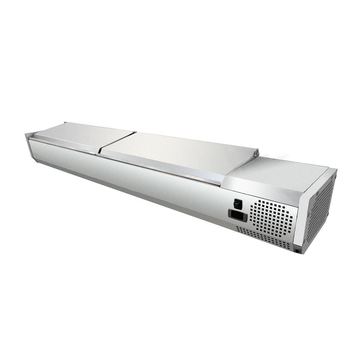 Skyrainbow Kühlaufsatzvitrine mit Edelstahldeckel, 1800 x 395 x 255, 8x GN1/3, Deckel geteilt