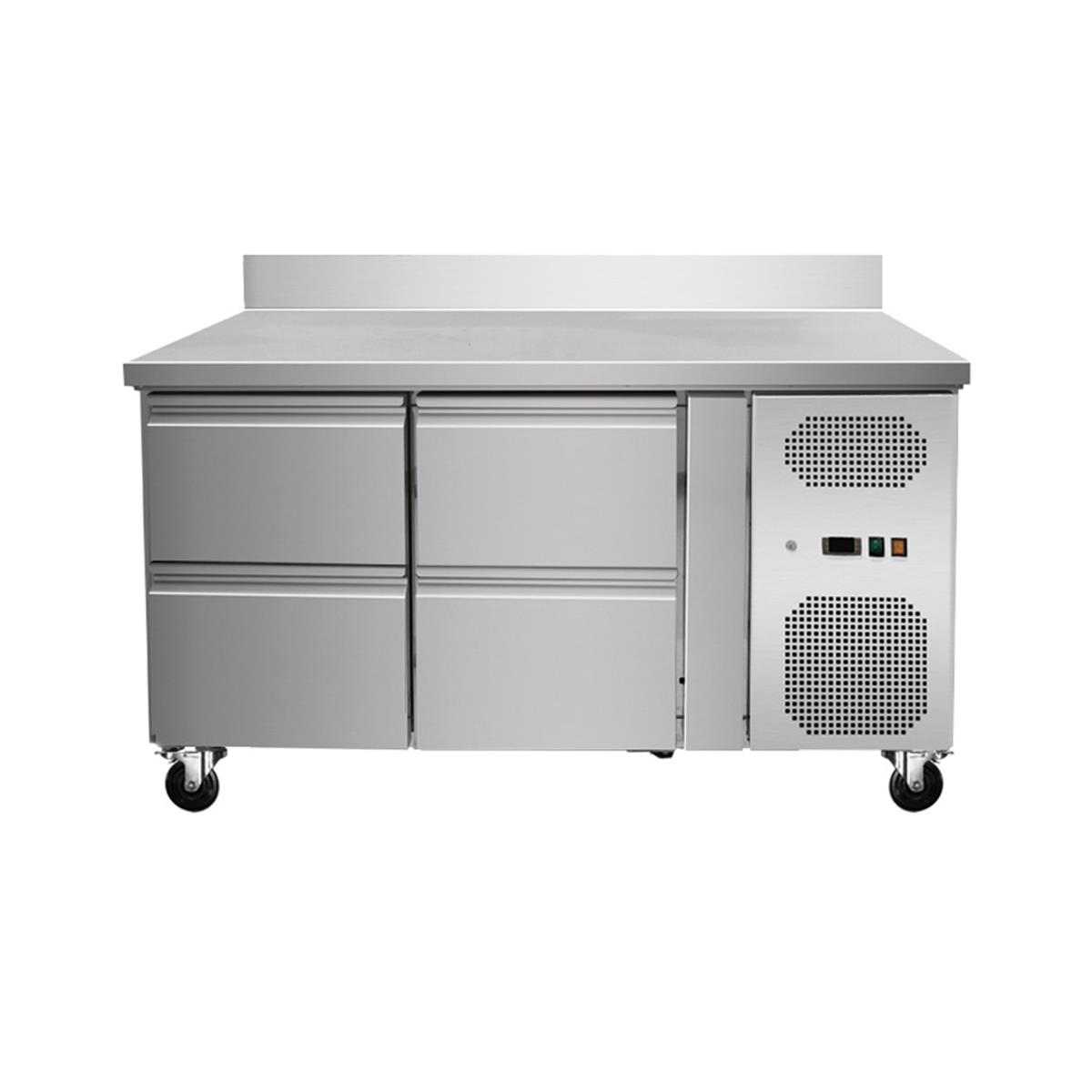 Skyrainbow Umluft Kühltisch mit 4 Schubladen und Aufkantung, -2° bis +8° C, 1360 x 700 x 860/960