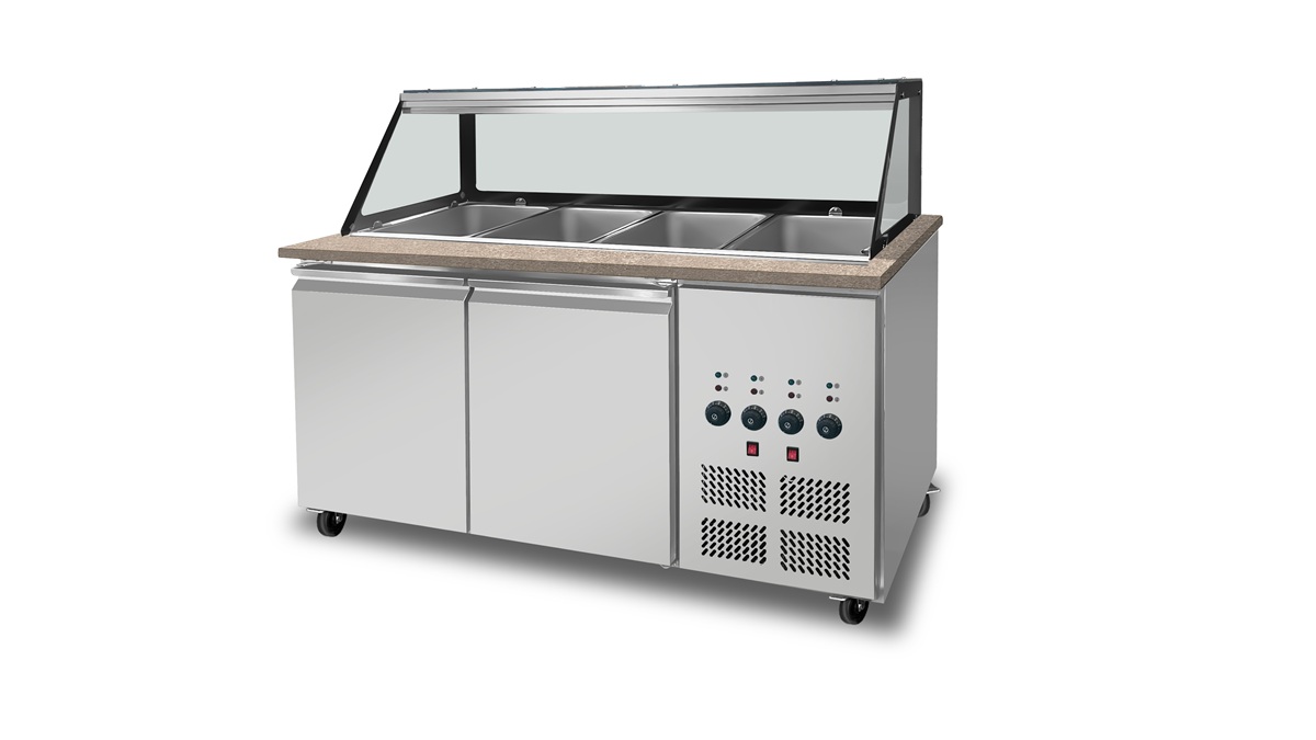 SKYRAINBOW Warme-Modular-Verkaufstheke SNACK-Line, +30°C/+85°C, 4x GN1/1, 1530x820x855
