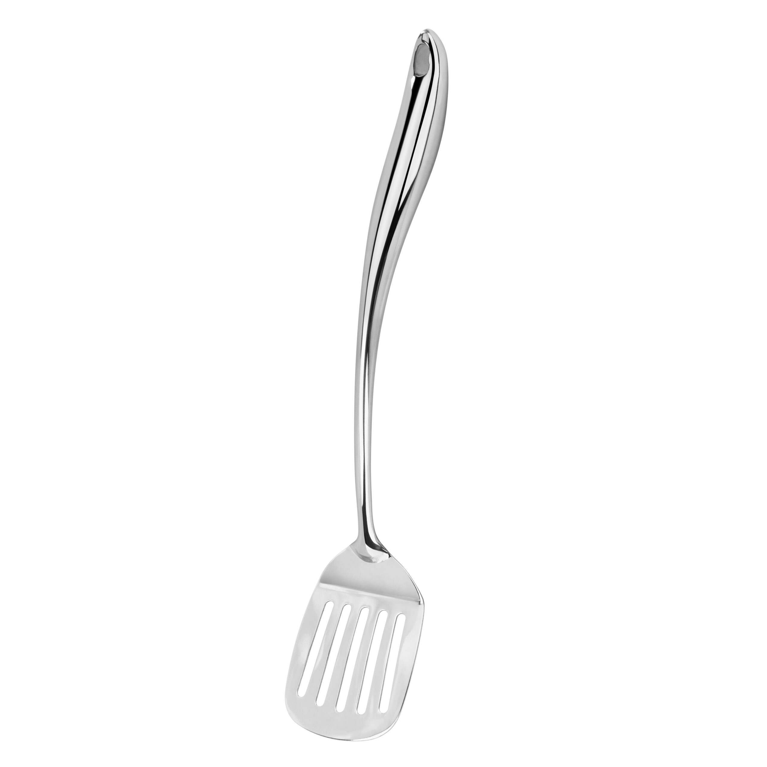 Dieser Bratenwender ist das ideale Küchenutensil, für das Wenden von Braten, Fisch, Pfannengerichten und vielem mehr. Mit seinem polierten Edelstahl, der ihm ein glänzendes, edles Aussehen verleiht, und dem abgerundeten, elegant geschwungenen Hohlgriff bietet er nicht nur eine funktionale, sondern auch eine ästhetische Lösung für Ihre Servierbedürfnisse.Die Aufhängeöse am Ende des Griffs ermöglicht eine einfache Aufbewahrung, da der Wender platzsparend aufgehängt werden kann, wodurch er jederzeit griffbereit ist.