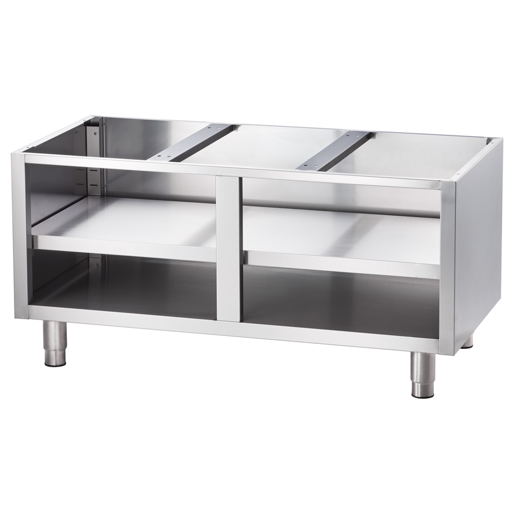 In Kombination mit diesem Unterbau aus hochwertigem Edelstahl können Sie bis zu drei Tischgeräte und Neutralelemente aus der Serie 700 ND mit einer Gesamtbreite von 1200 mm auf die perfekte Arbeitshöhe bringen und in Ihre Kochstrecke integrieren oder frei aufstellen.Der verstärkte, präzise gearbeitete Unterbau wird von standfesten, höhenverstellbaren Füßen sicher getragen und ist dreiseitig geschlossen. Ihre Kochgeräte und Neutralelemente können Sie mühelos passgenau in die Oberseite einsetzen. Ein Grundboden und der in vier Höhen verstellbare Regalboden schenken Ihnen zusätzlichen Stauraum.Falls sich Ihre Anforderungen ändern, erhalten Sie bei uns die passenden Türen zum Nachrüsten.Für Ihre Planungsfreiheit erhalten Sie diesen Unterbau ebenfalls in 400 mm oder 800 mm Breite für bis zu zwei Geräte sowie mit Flügeltüren.Schaffen Sie für sich und Ihre Mitarbeiter einen auf Ihre Bedürfnisse abgestimmten, organisierten Arbeitsplatz, der Ihre professionelle Kochkunst unterstützt, Ihre Zusammenarbeit stärkt und zu einem Ort des Wohlfühlens wird – Ihre Gäste werden es merken!