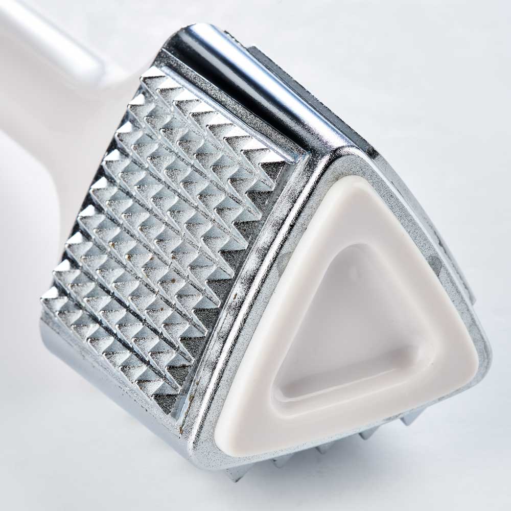Der Fleischklopfer hat zwei gezackte Seiten von unterschiedlicher Größe, damit Sie je nach Sorte das Fleisch ideal mürbe klopfen können.Verwenden Sie die glatte Seite zum gleichmäßigen Plattieren von Fleisch.
