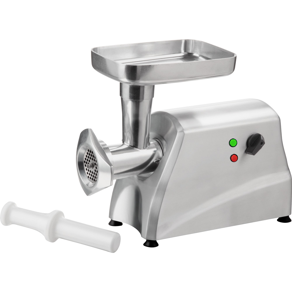 Für die gelegentliche Herstellung von Hackfleisch oder sogar für die Verarbeitung von Fisch besonders geeignetes, kompaktes Gerät mit einem robusten Aluminiumgehäuse.Mit Hilfe des scharfen Messers und den drei im Lieferumfang enthaltenen Lochscheiben verarbeiten Sie bis zu 85 kg Fleisch in der Stunde.Dabei ist das standsichere Gerät einfach zu bedienen und zu reinigen. Sollten Sie versehentlich zu schnell Produkt nachfüllen, hilft der praktische Rückwärtsgang Verstopfungen zu beheben.