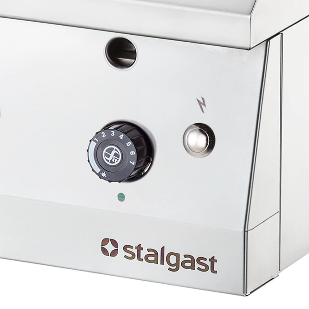 Jetzt wird´s edel! Unsere beliebten Griddleplatten bieten wir Ihnen jetzt in einer verchromten Variante an! Sie erwartet höchster Grillspaß auf einer sehr glatten Profi-Bratfläche, die weniger Hitze abstrahlt, weniger Bratöl benötigt und hervorragend zu reinigen ist!Der Grill bietet Ihnen eine vollständig verchromte Bratfläche mit zwei unabhängig voneinander regelbaren Heizzonen von zus. ca. 4400 cm2. Die Wärme wird auf der geschmacksneutralen Grillplatte gleichmäßig verteilt und weist dabei nur eine geringe Wärmeabstrahlung auf. Sie braten schnell und unkompliziert Fleisch und Fisch ebenso hervorragend wie Gemüse, Eier- oder Süßspeisen. Sie können zeit- und fettsparend größere Mengen Grillgut gleichzeitig und ohne Wärmeverlust zubereiten und sogar direkt marinieren oder flambieren.Die Chromplatte ist leicht zu reinigen und besonders hygienisch, da Bakterien und Verschmutzungen nicht haften bleiben. Überschüssiges Fett und Bratsäfte werden über die Auffangrinne in die Auffangschublade abgeführt. Die Schublade entnehmen Sie zum Entleeren kinderleicht aus dem schräggestellten Bedienfeld mit Sicherheitsthermostat und ergonomischen Knebeln.Dieses empfehlenswerte, kompakte Tischgerät aus hochwertigem Edelstahl bereichert durch sein modernes Design und ausgezeichneten Eigenschaften Ihre Küche und avanciert schnell zur umschwärmten Kochstation in Ihrer Gastronomie.Falls Sie einen Unterbau für dieses Tischgerät wünschen, ist das kein Problem. Sie müssen sich nur zwischen unseren vielfältigen Möglichkeiten entscheiden: Wir führen offene oder geschlossene Unterbauten mit und ohne Tür in den unterschiedlichsten Größen, ganz nach Ihren Wünschen.Dank der fettarmen, schonenden Zubereitung erzielen Sie ausgezeichnete Geschmackserlebnisse für Ihre Gäste. Zu jeder Gelegenheit, zu jeder Jahreszeit!