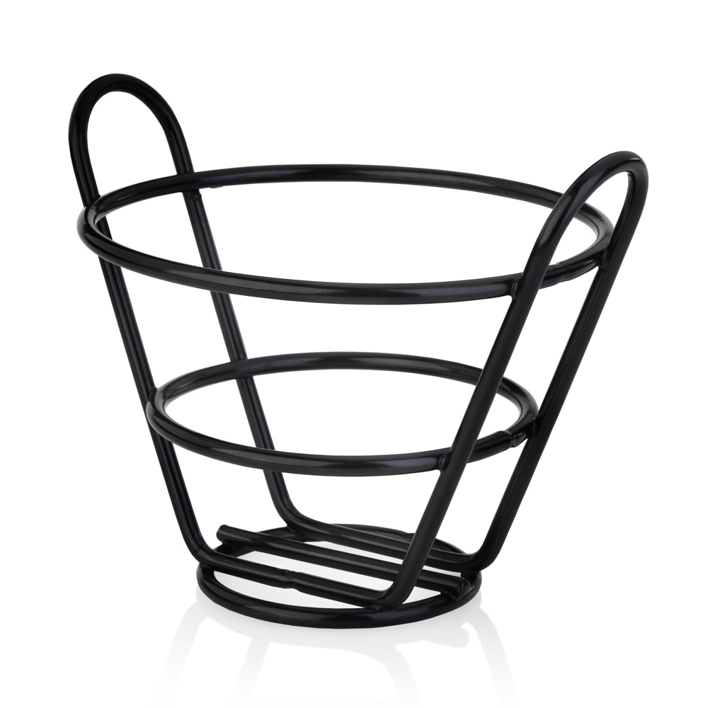 Dieser Pommestütenständer aus schwarz pulverbeschichtetem Stahl bietet, bestückt mit z.B. Papierspitztüten, eine stilvolle und funktionelle Möglichkeit, Pommes Frites oder Snacks auf Buffets oder in gastronomischen Einrichtungen zu präsentieren. Mit seinem modernen Industriedesign ist dieser Ständer eine trendige Ergänzung für jedes Serviceumfeld.Um die Pulverbeschichtung und die Langlebigkeit des Ständers zu bewahren, wird Handwäsche empfohlen.