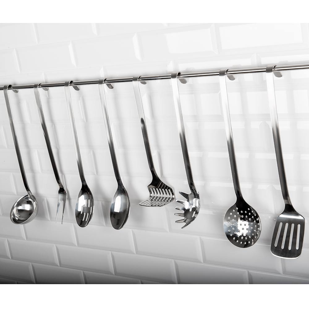 Durch die Aufhängung am Griffende ist das professionelle Kochbesteck immer griffbereit an Ihrem Arbeitsplatz.