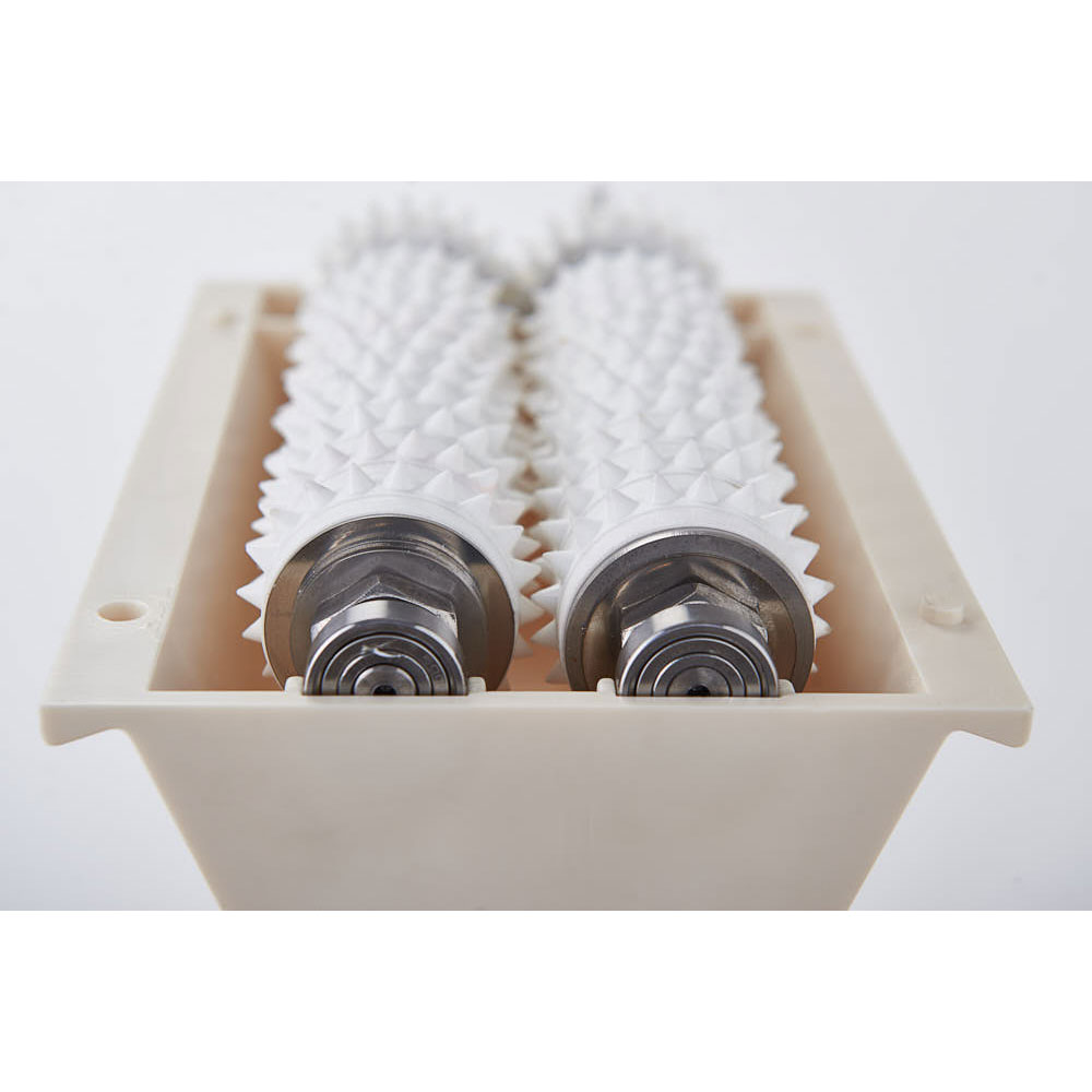 Das Geheimnis saftiger Schnitzel liegt in der Vorbereitung. Beim Durchführen des Schnitzels zwischen den Walzen wird das Fleisch von den Kunststoffnuppen plattiert. Bei diesem Vorgang werden die Fleischfasern geschont und der Saft wird im Fleisch gehalten für ein zart zubereitetes Fleisch.Je nach Fleischdicke können Sie den Abstand zwischen den Walzen manuell einstellen.Diese Schnitzelpresse ist als Aufsatz besonders leicht in den Fleischmürber VG0242427 von Stalgast einsetzbar und eine sinnvolle Ergänzung Ihres Equipments.